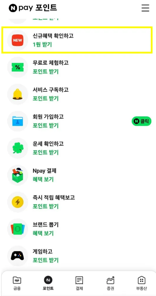 포인트 탭 상단 '신규혜택 확인하고' 영역 7일 노출 지원