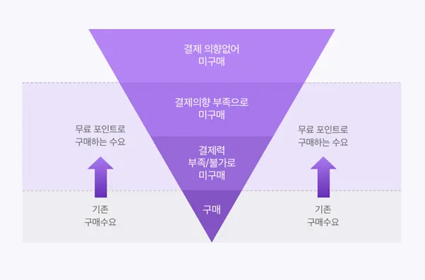 대부분의 서비스가 포인트를 활용하는 방식은, 사용자가 결제했을 때 확보된 수익의 일부를 적립으로 돌려주거나, 아니면 마케팅비용을 사용해서 무료로 포인트를 지급해주면, 사용자는 받은 포인트를 다시 쓰기 위해 서비스로 방문하게 되는 락인 효과를 노리게 되는데요, 이 방식은 결국 서비스 입장에서는 결제 수익을 깎거나, 마케팅 비용을 쓰는 등의 수단으로 사용자를 붙잡아두는 것이기 때문에 공격적으로 지속하기가 매우 어려운 구조입니다.