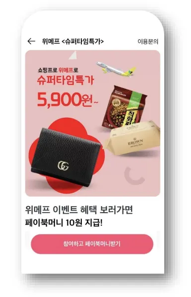 유저가 애용하는 플랫폼의 포인트를 보상으로 제공하여 구매 단가에 대한 부담을 낮춰주고 구매 전환율을 높여주는 상품입니다.