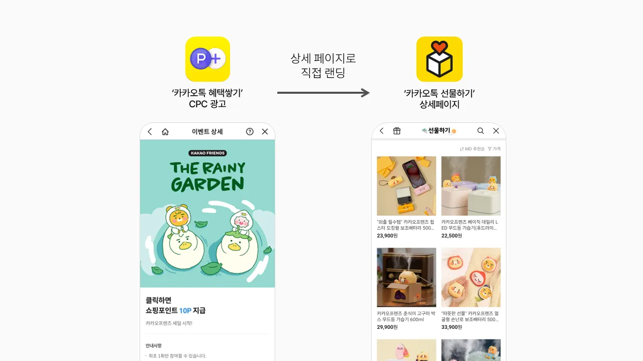 ‘카카오톡 혜택쌓기’ CPC 광고(선물하기 랜딩) 예시