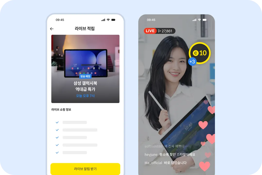 라이브 시청과 보상을 결합해 브랜드 인지 → 관심 → 장바구니·구매로 이어지는