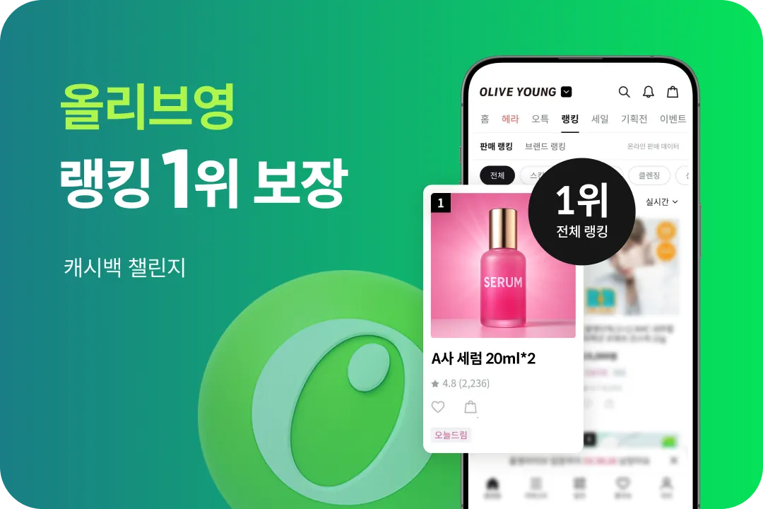실제 구매·인증 미션을 통해 올리브영 실시간 랭킹을 폭발적으로 끌어올리는 랭킹 부스팅 상품 입니다.
